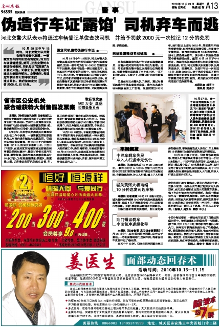 客户热线:0931-96555 传真:0931-8159628(新闻) 8123740(广告) 本报社址:兰州市白银路123号 邮编730030 Email:lzcbreader@163.com