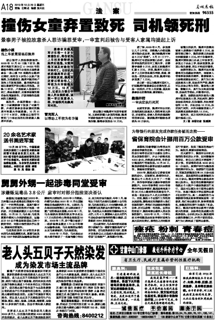 客户热线:0931-96555 传真:0931-8159628(新闻) 8123740(广告) 本报社址:兰州市白银路123号 邮编730030 Email:lzcbreader@163.com