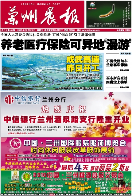 客户热线:0931-96555 传真:0931-8159628(新闻) 8123740(广告) 本报社址:兰州市白银路123号 邮编730030 Email:lzcbreader@163.com