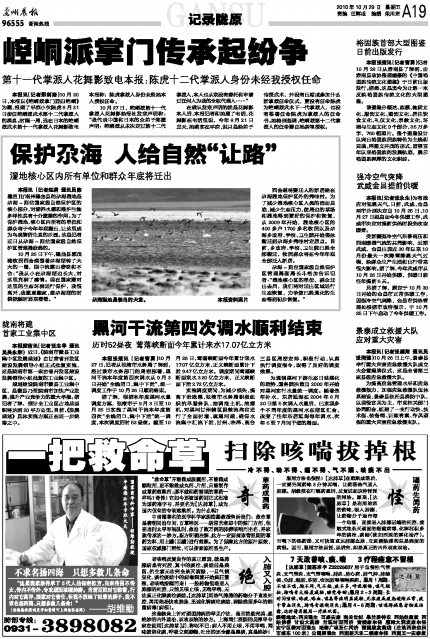 客户热线:0931-96555 传真:0931-8159628(新闻) 8123740(广告) 本报社址:兰州市白银路123号 邮编730030 Email:lzcbreader@163.com