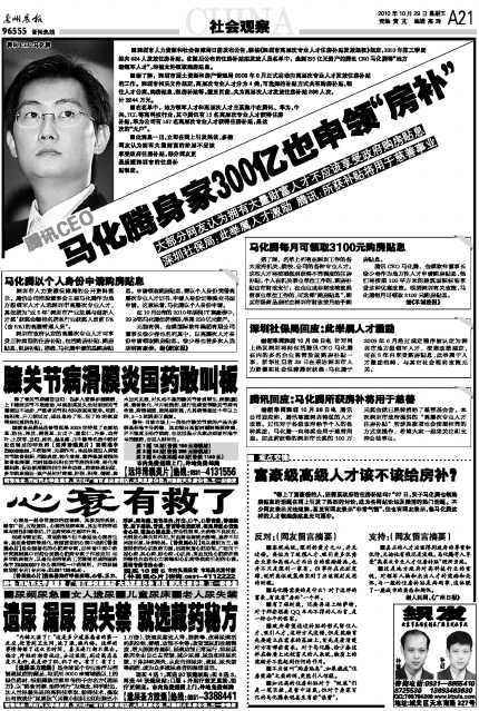马化腾身家300亿也申领“房补”