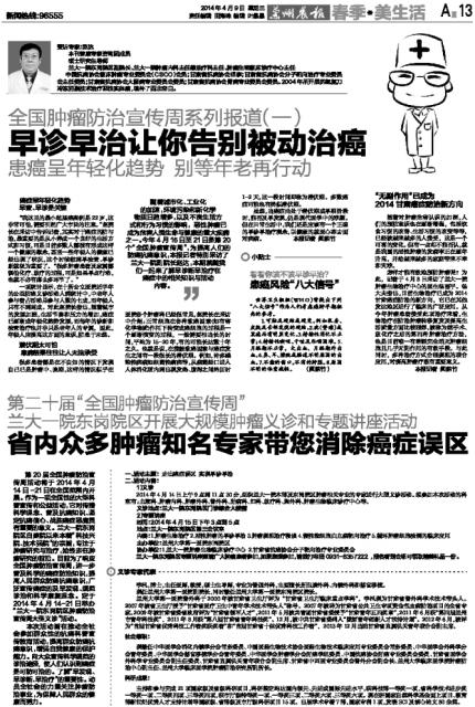 “无副作用”已成为2014甘肃癌症防治新方向