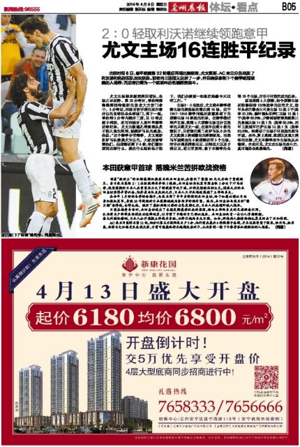 本田获意甲首球 落魄米兰苦拼欧战资格